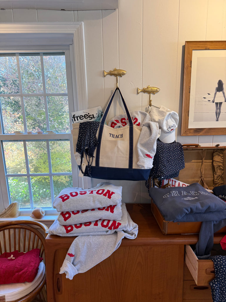 Meet the Boston Crew - perfectly oversized & first Boston piece. Screenprinted by our team on the Cape with Thach tucked neatly into the “T” and finished with our signature fish on the left cuff, it’s the kind of piece that feels quietly special and very us.