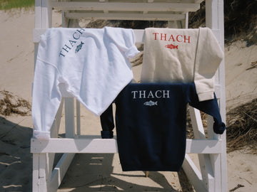 Your new go-everywhere layer. The Clubhouse Crewneck is a soft, lightweight sweatshirt bearing our signature Thach logo - effortless and easy, just like a Cape summer. Perfect for tossing on over a bikini, cozying up by the fire at the beach, or staying warm on breezy sunset rides. It’s that classic, grab-and-go piece you’ll reach for all season (and every season after).